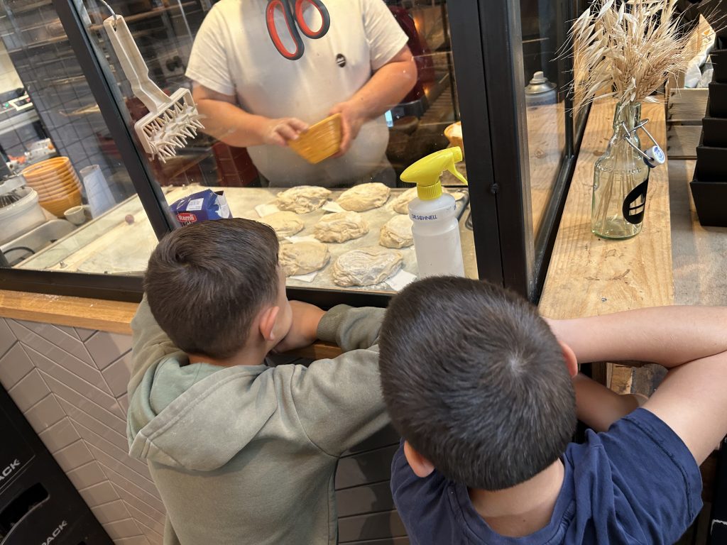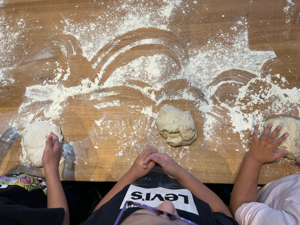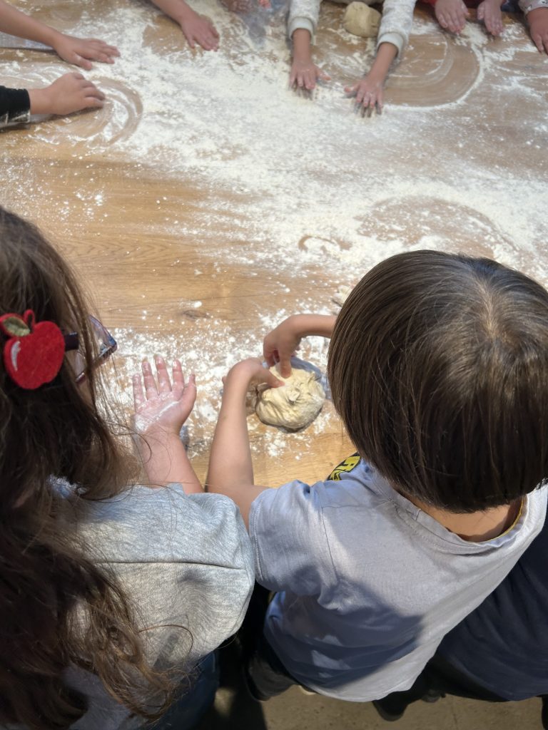 Dann folgte das Highlight des Tages: Jedes Kind erhielt ein Stück Brotteig und durfte daraus durch Kneten und Falten ein eigenes kleines Brot formen.