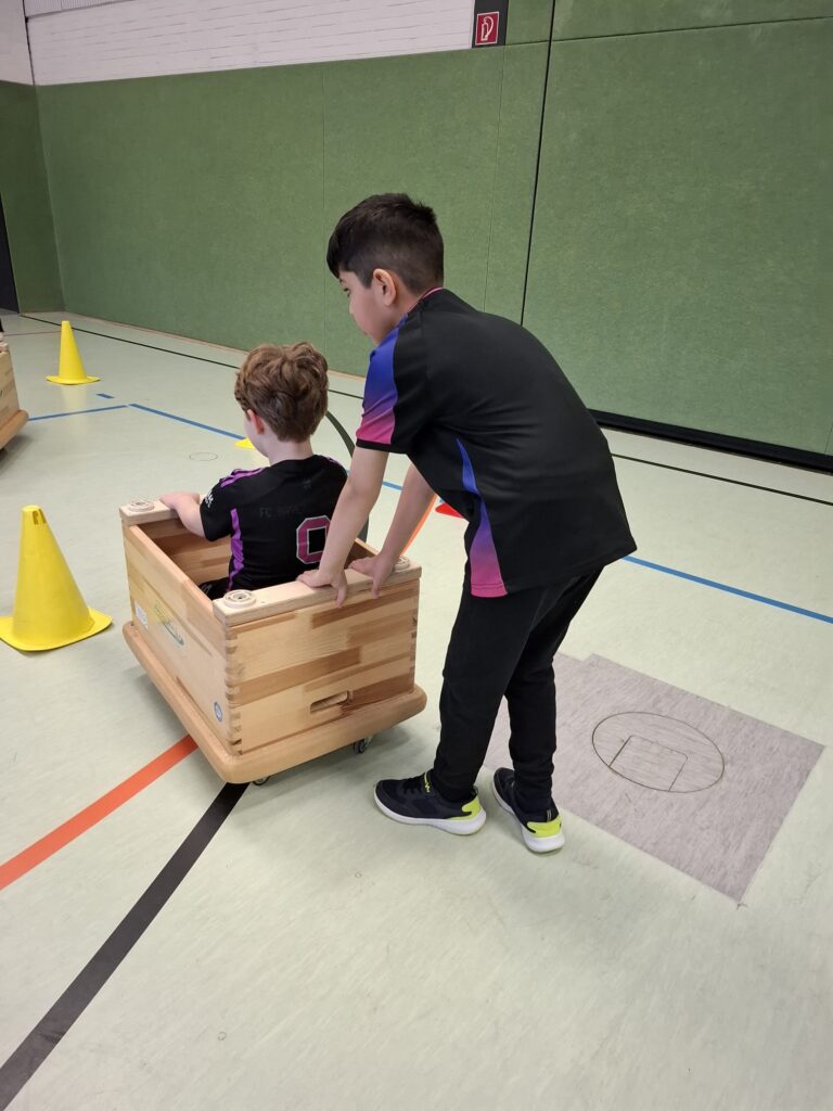 Am vergangenen Donnerstag waren die Vorschulkinder der umliegenden Kindergärten bei uns zu Besuch. Gemeinsam mit den Drittklässlern (ihren zukünftigen Paten) haben sie einen sportlichen Vormittag in der Turnhalle erlebt. Die Kinder hatten sehr viel Spaß beim Klettern, Springen, Schaukeln und Fahren auf Rollbrettern. Die Schulkinder begleiteten und halfen den Kindergartenkindern bei den verschiedenen Übungen. Im Anschluss daran konnten sich alle beim „gesunden Frühstück“ stärken. Vielen Dank an unsere tollen Helfer, die sich immer sehr viel Mühe geben bei der Zubereitung des „gesunden Frühstücks“.