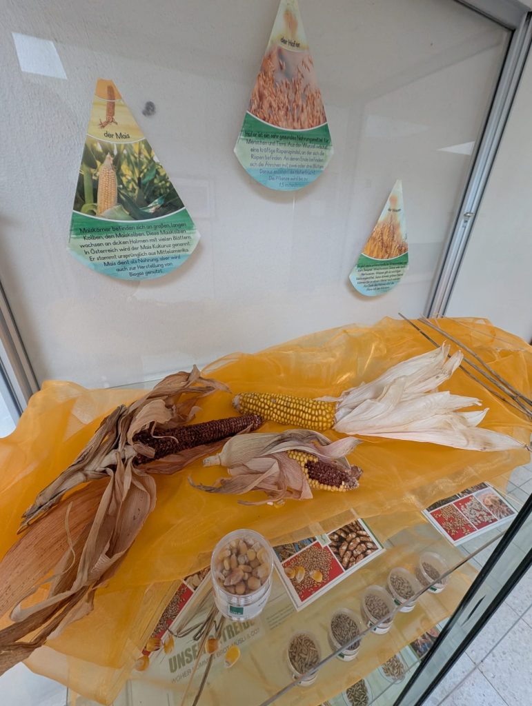 In einer weiteren Vitrine befindet sich einiges zum Thema “Getreide”, das die Kinder der dritten Klasse im Sachunterricht behandelt haben.