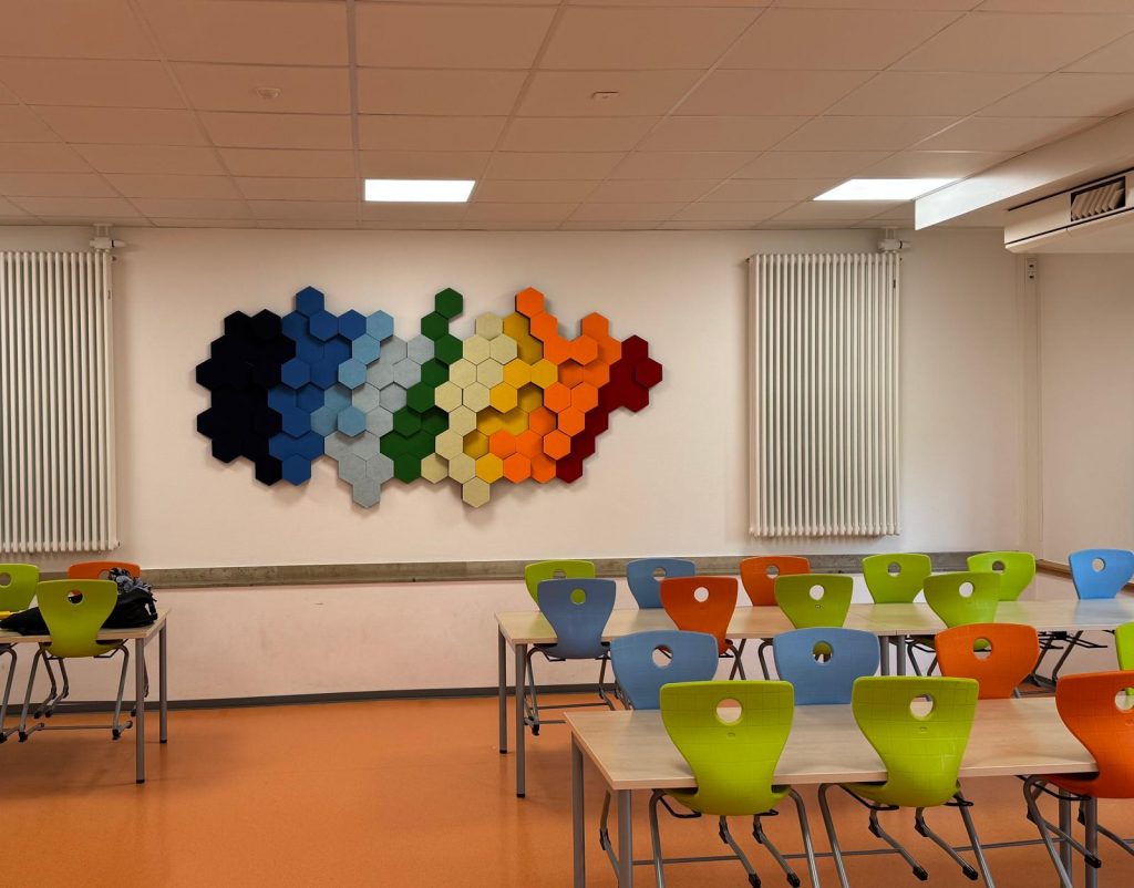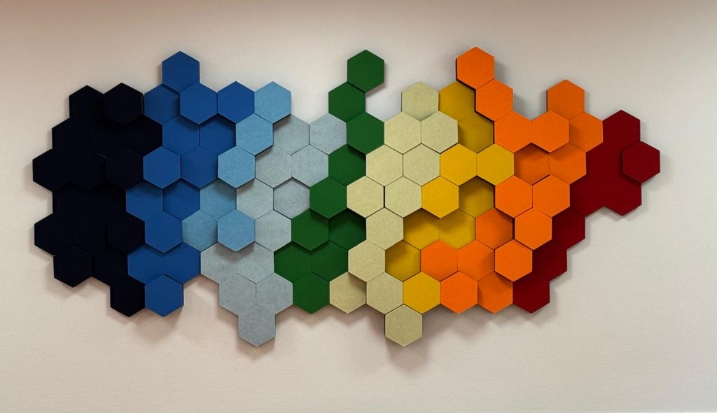 Zudem haben einige Kolleginnen die Lärmschutzwaben unseres Bienenprojekts in der Mensa bunt angemalt. Ein richtiger Blickfang!